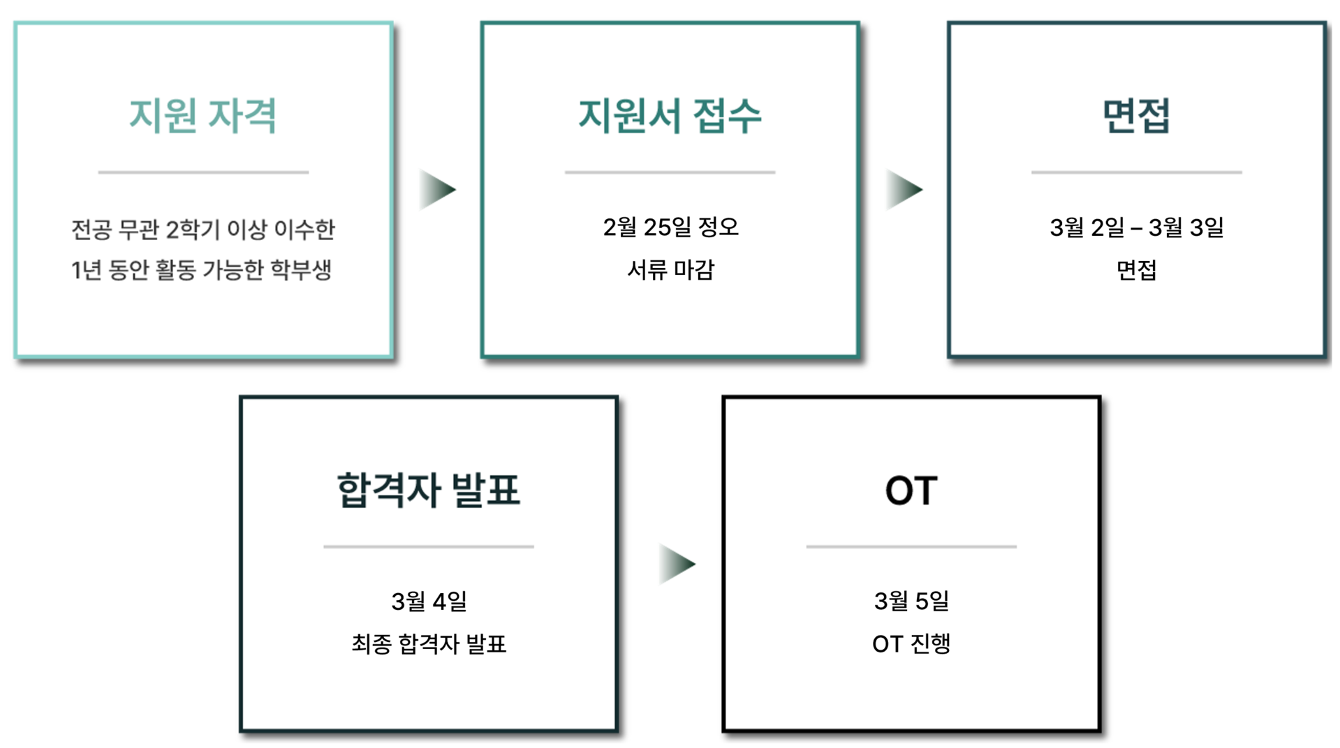 * 1차 서류 합격은 3월 1일, 최종 합격은 3월 4일에 순차적으로 안내 문자가 발송될 예정입니다.